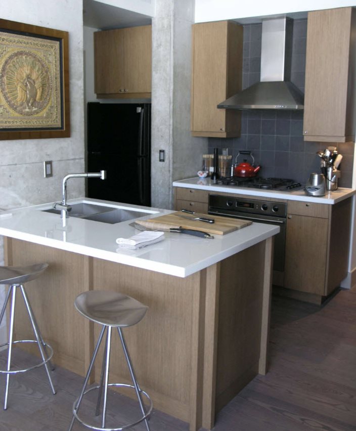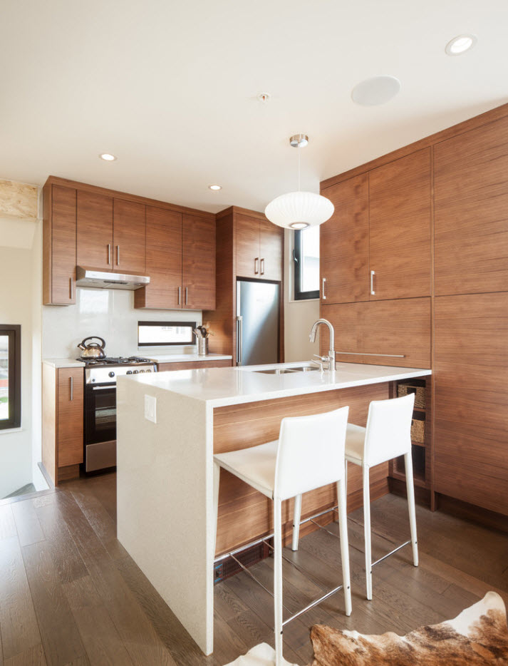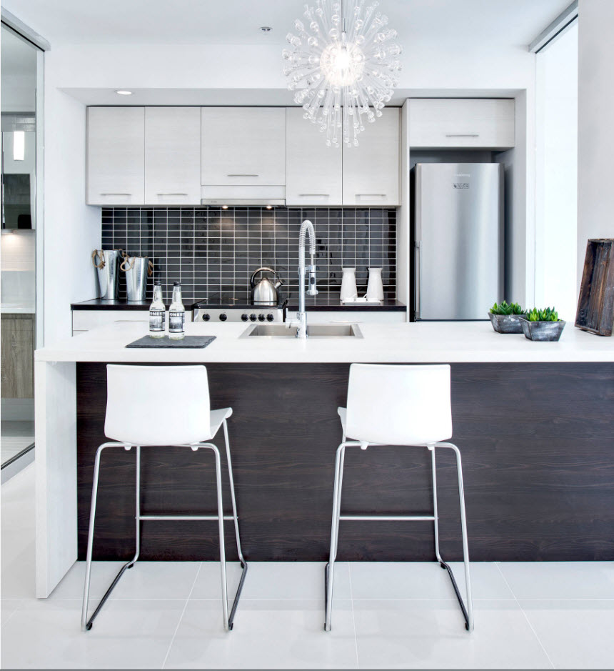 Un bar ou un îlot de cuisine est souvent utilisé pour diviser l'espace.