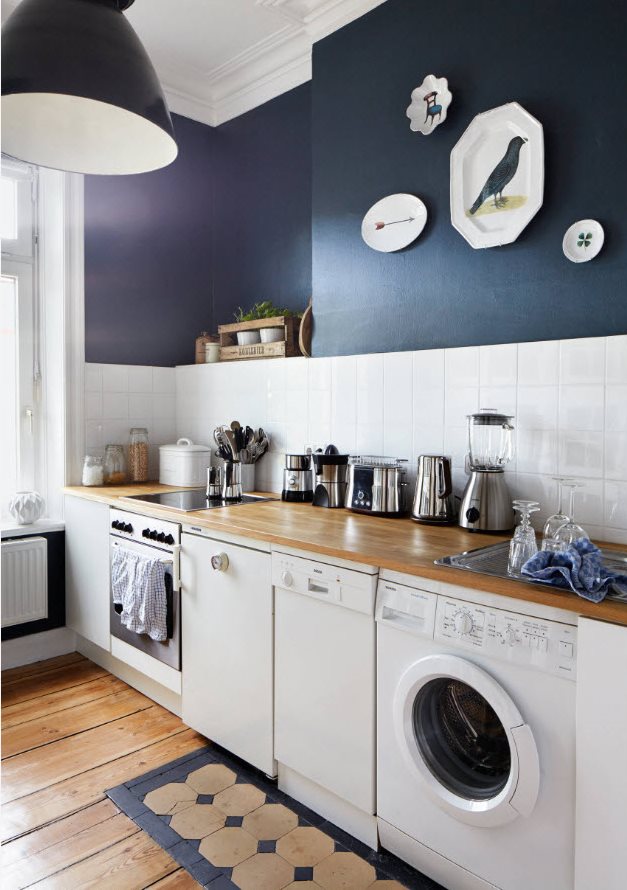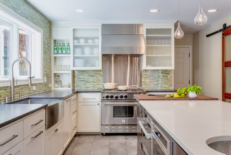Pour les cuisines de taille moyenne, des nuances claires pour les murs sont recommandées.
