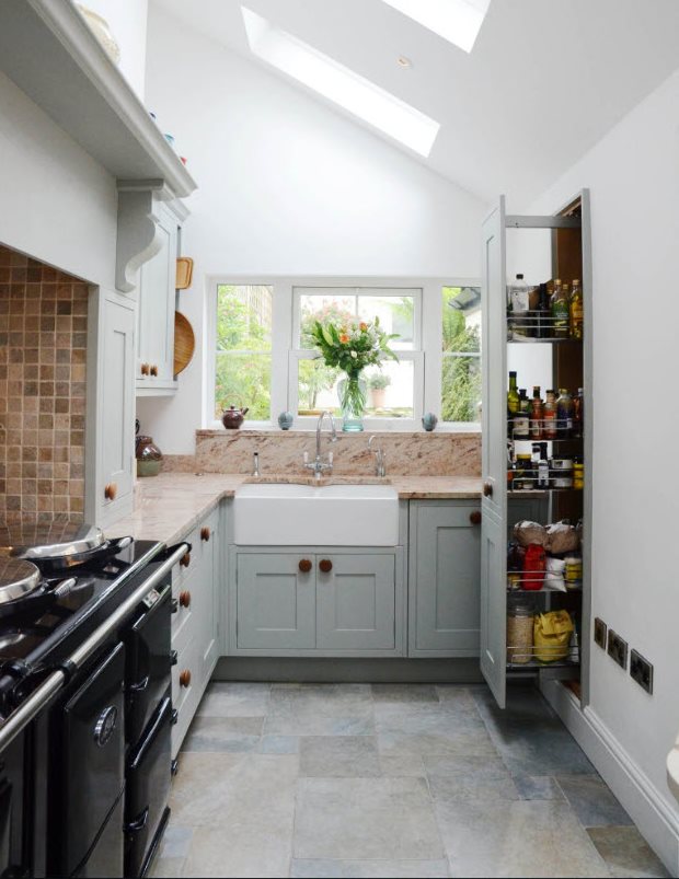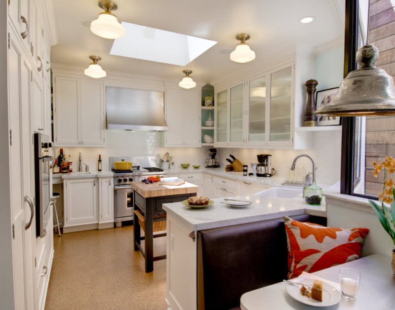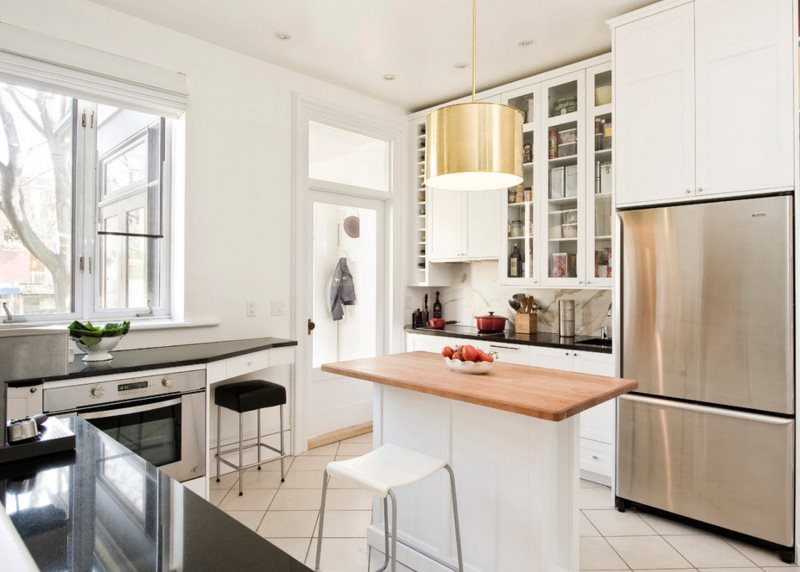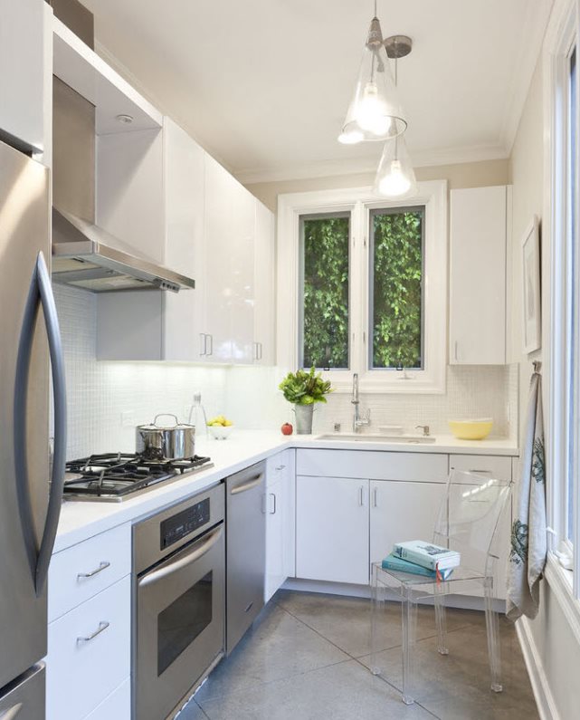 - Appliquer des nuances claires en excès. Une palette légère dans la finition permettra d'ajuster légèrement la surface de la pièce. La cuisine sera plus spacieuse.