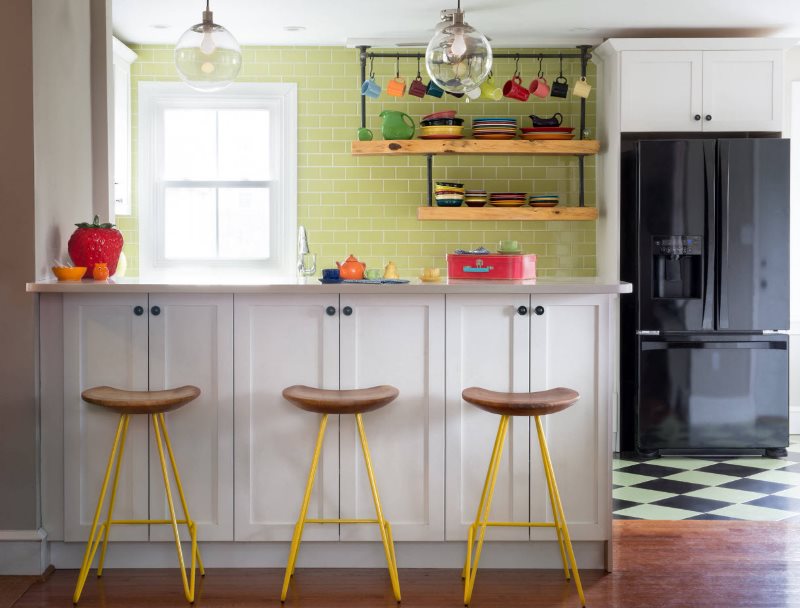 Olive, pistache, turquoise et autres nuances naturelles colorées sont bien adaptées pour la décoration d'un mur d'accent ou d'un tablier de cuisine