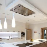 Cette hotte peut également être appelée île en raison de son emplacement. Il représente une boîte posée au plafond, et l'air est évacué par des tuyaux de ventilation cachés derrière un plafond suspendu