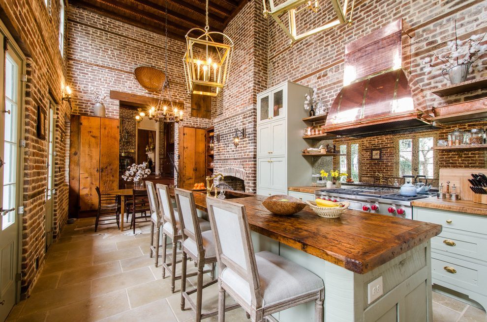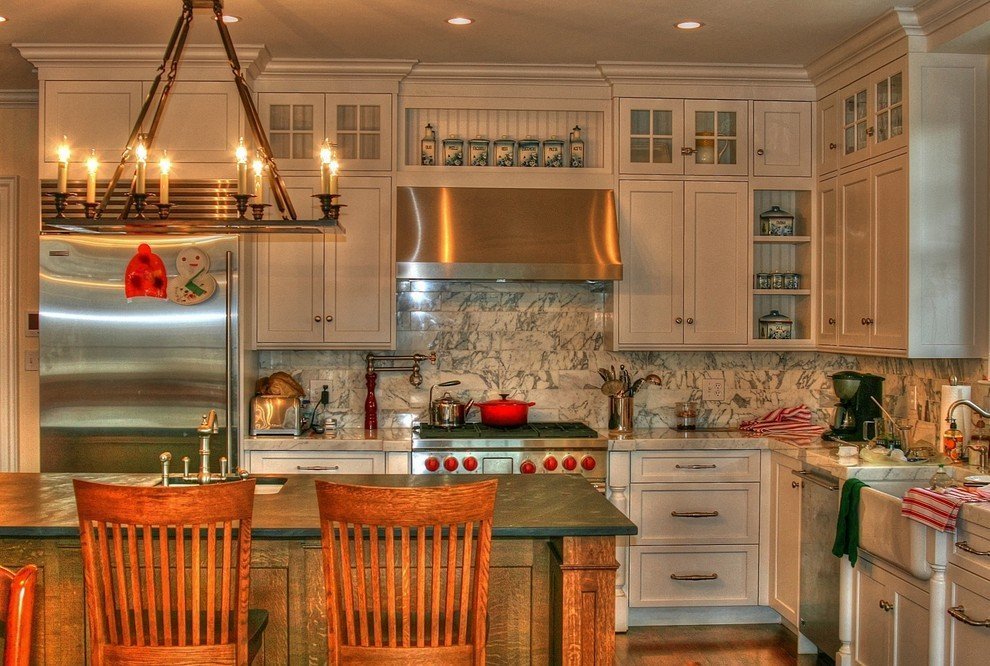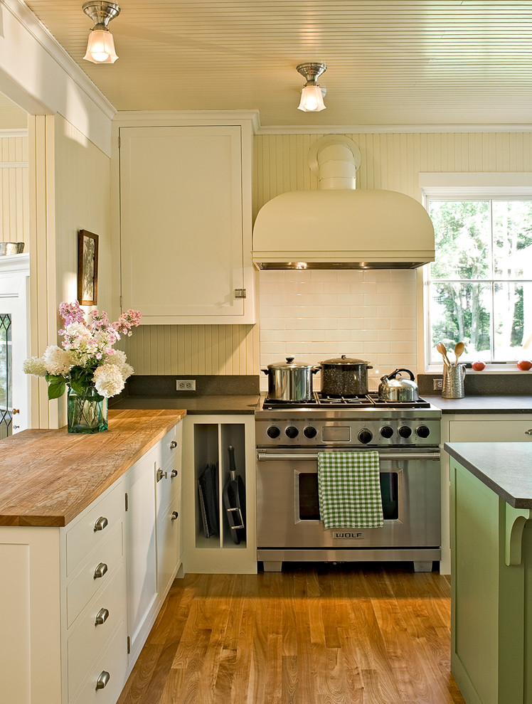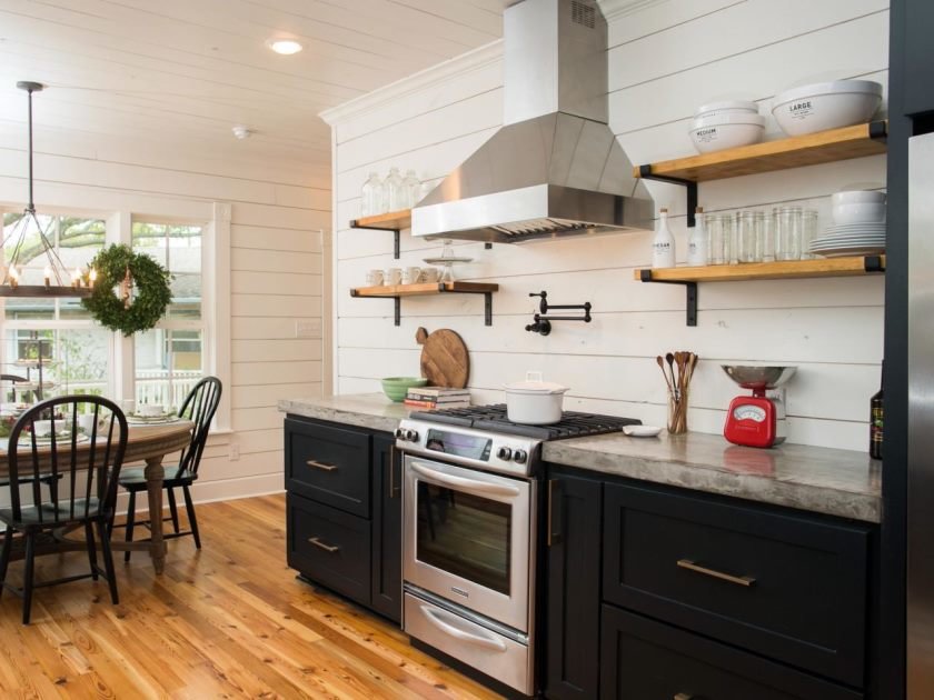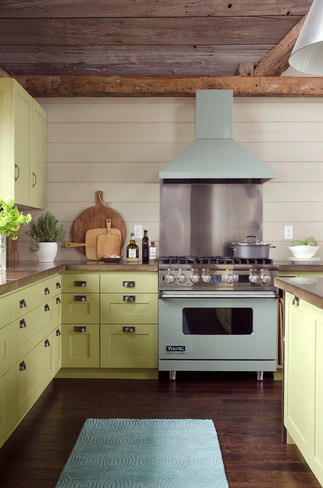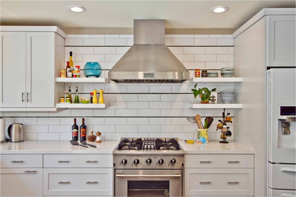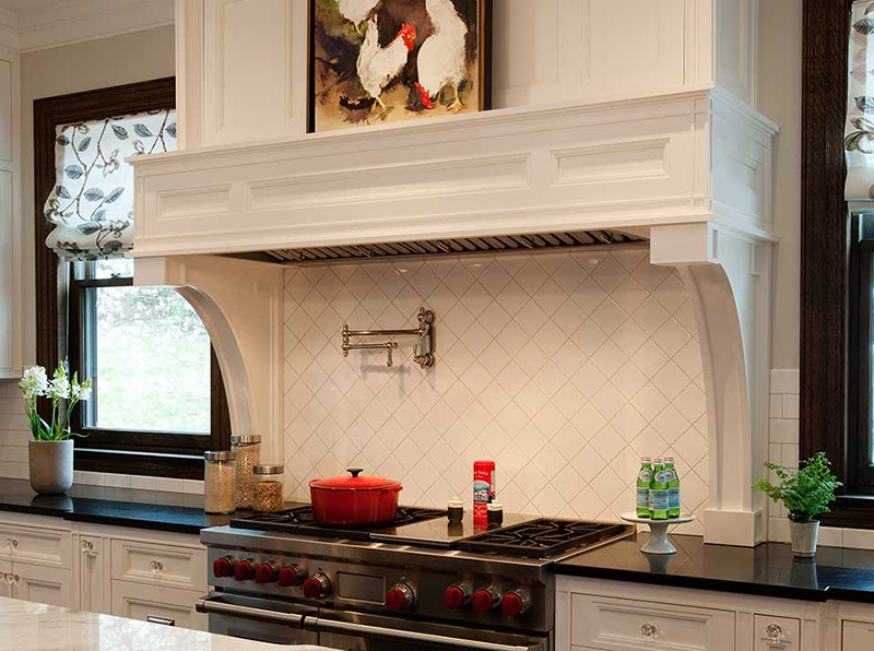 Les hottes de cheminée sont plus souvent utilisées dans les cuisines spacieuses et au-dessus des grands poêles.