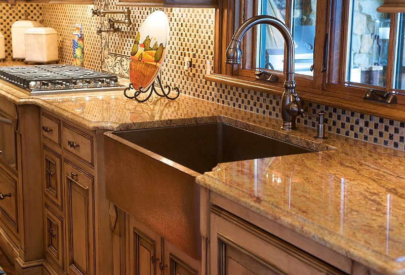 - Pierre artificielle, bois, granit. Ils sont considérés comme de l'élite, car ils remplissent l'espace cuisine d'exclusivité, de style et de caractère uniques.