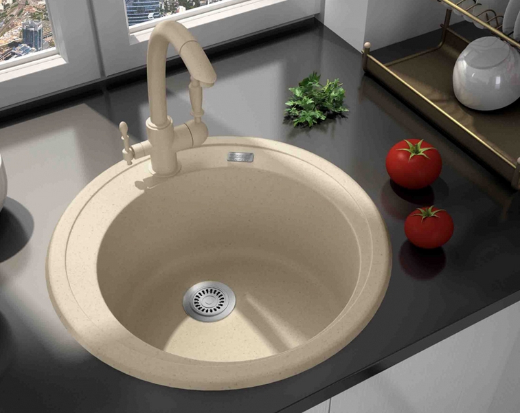 - Cercle. Le plus souvent, les éviers sont livrés sur le marché avec un diamètre compris entre 45 et 51 centimètres. Plus l'appareil - espace, facilité d'entretien et absence d'angles. Mais ils ne sont pas équipés de sections supplémentaires;