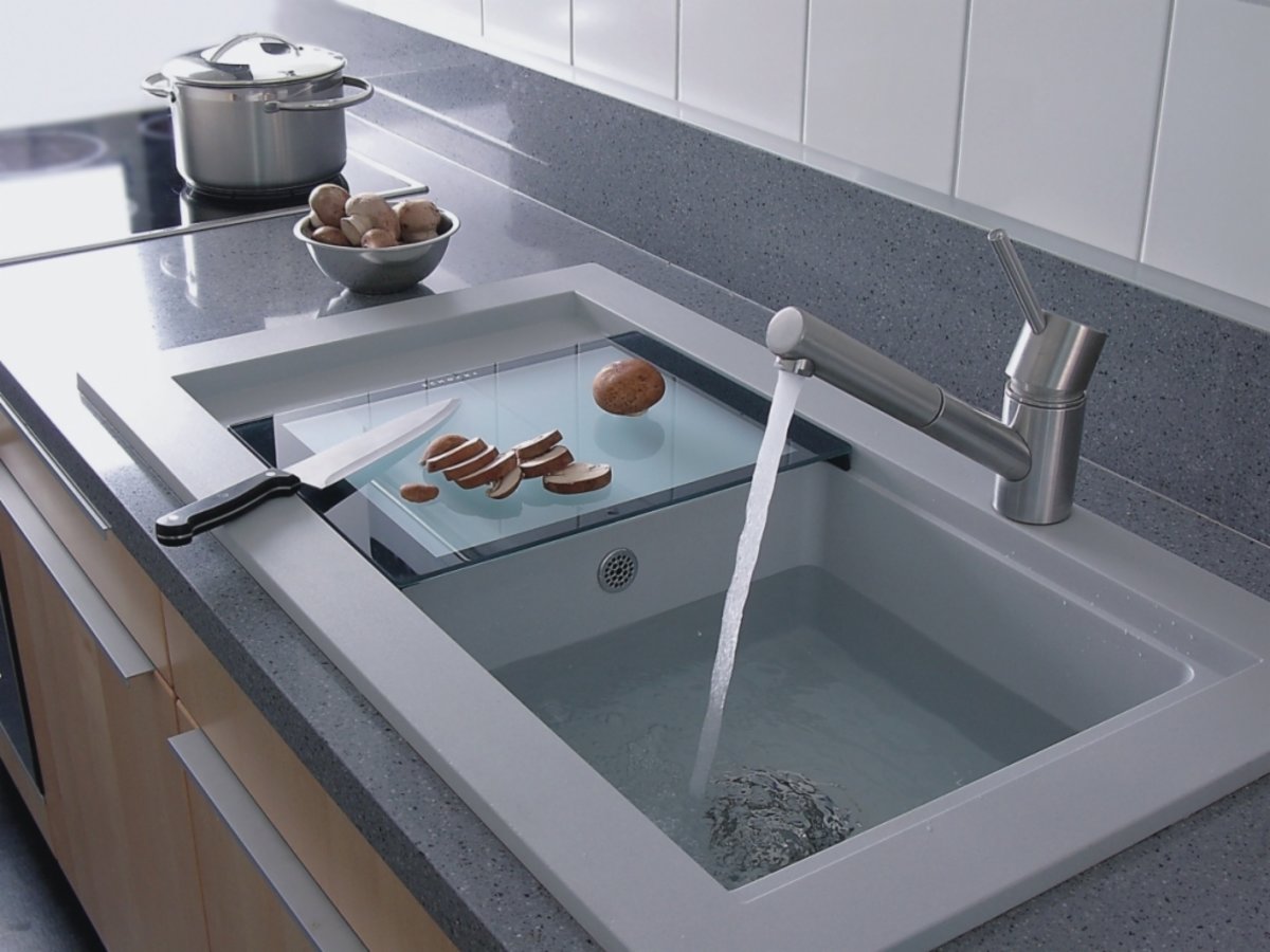 - Planche à découper. Tous les déchets liquides dans le processus de cuisson tomberont dans l'égout de l'évier et ne se répandront pas sur le comptoir.
