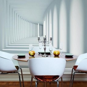Une option plutôt inhabituelle est le papier peint avec imitation de brique. A l'air bien lorsqu'il est correctement dimensionné et en combinaison avec des murs blancs. Pour une meilleure vue de l'apparence d'un tel papier peint pour la cuisine, vous devriez voir la photo.