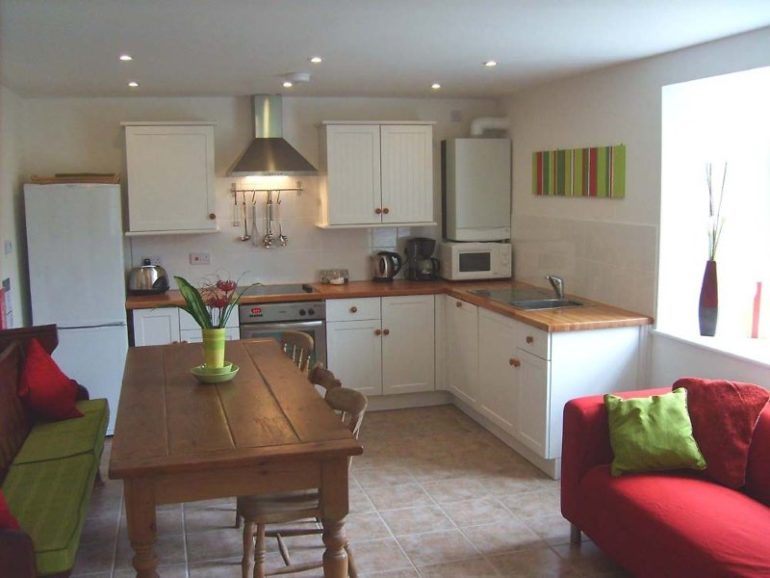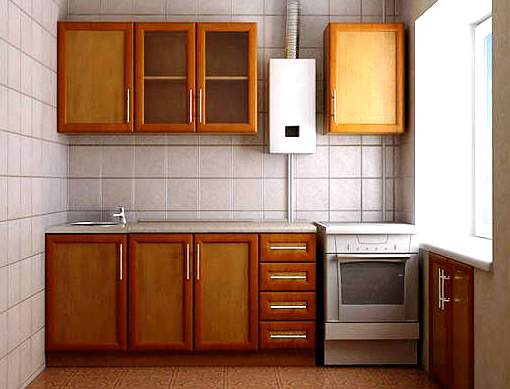 - les trois appareils principaux de la cuisine - une cuisinière, une chaudière à gaz ou une chaudière, un réfrigérateur doivent être placés à une certaine distance les uns des autres (généralement au moins 30 cm);
