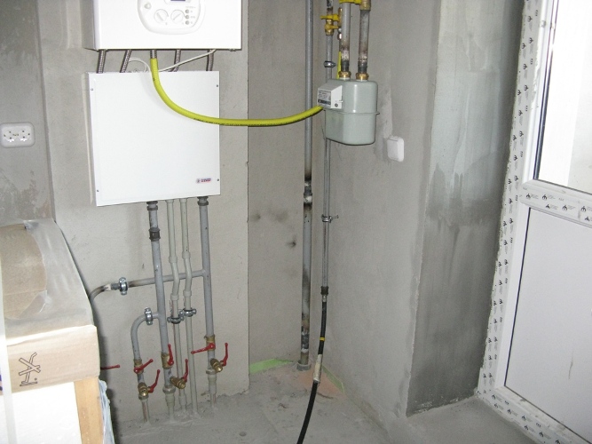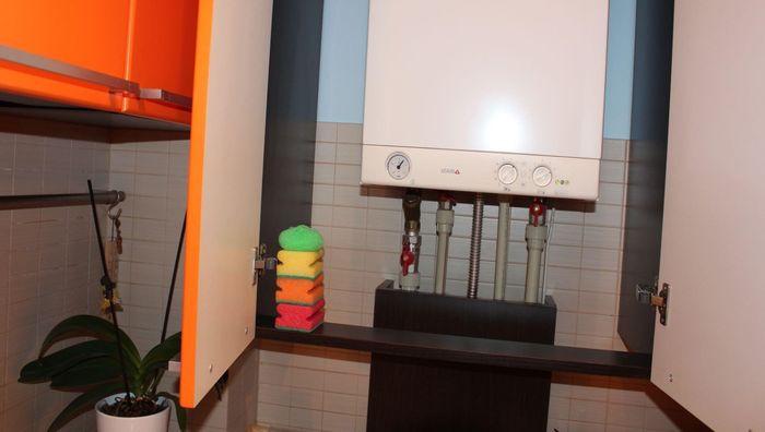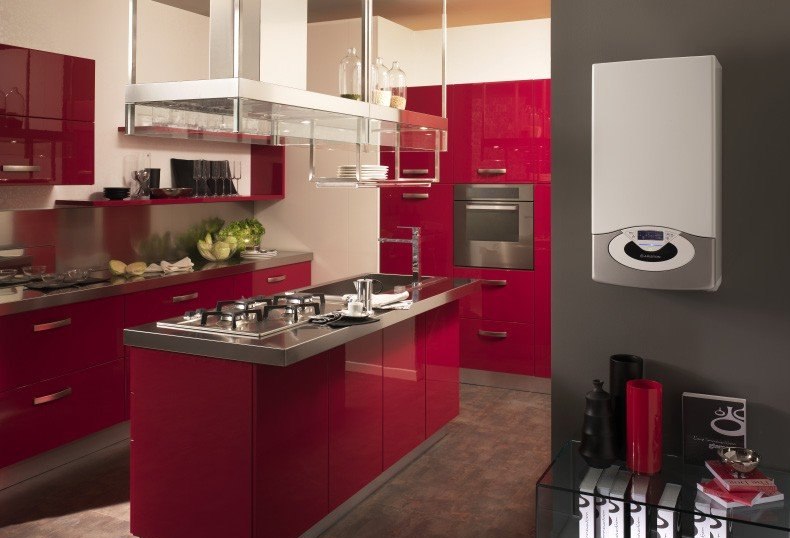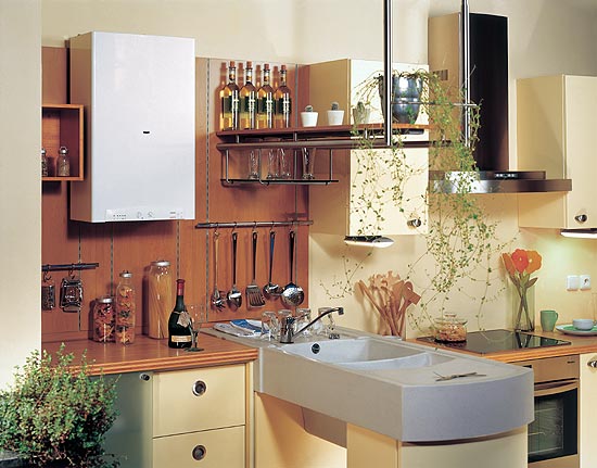 - Photo: cuisines avec une chaudière à gaz sur le mur