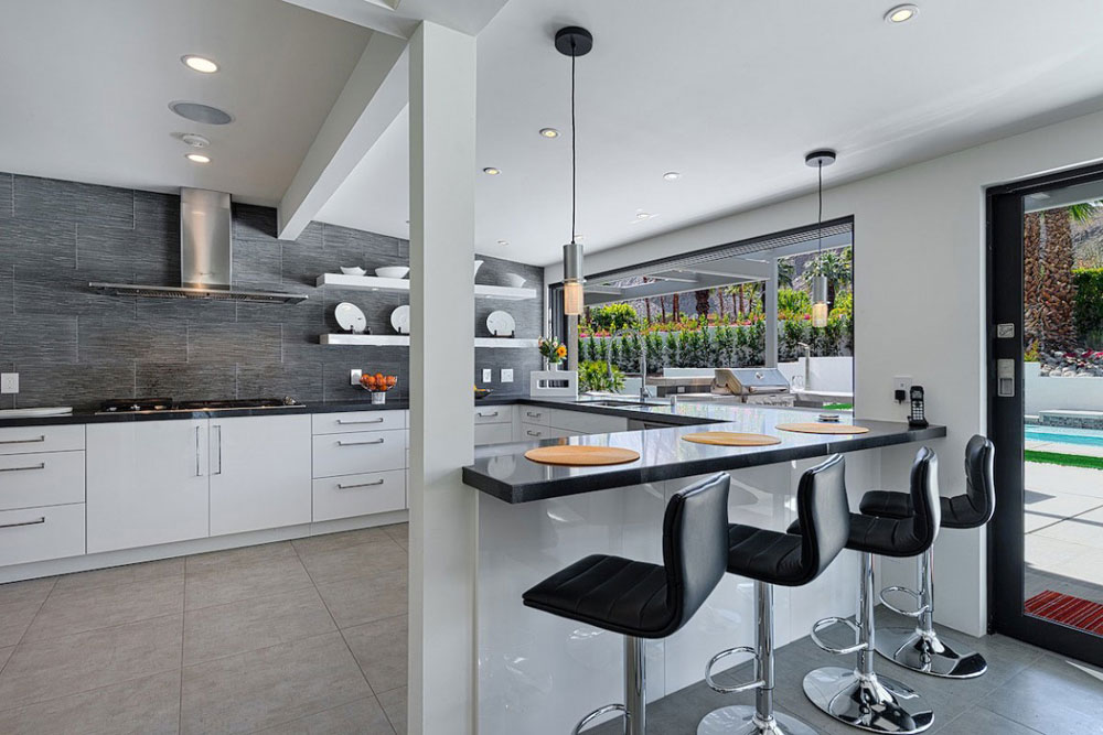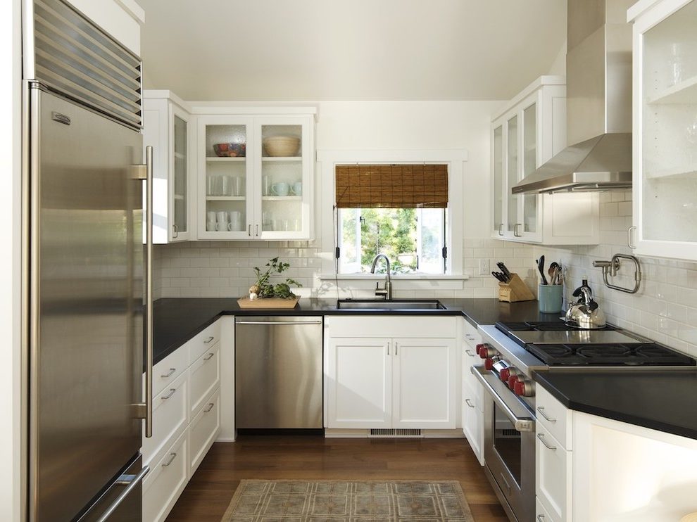 - La seule issue pour une petite cuisine. Si vous ajoutez des miroirs au décor, réglez correctement l'éclairage - vous pouvez obtenir une augmentation optique dans la pièce.