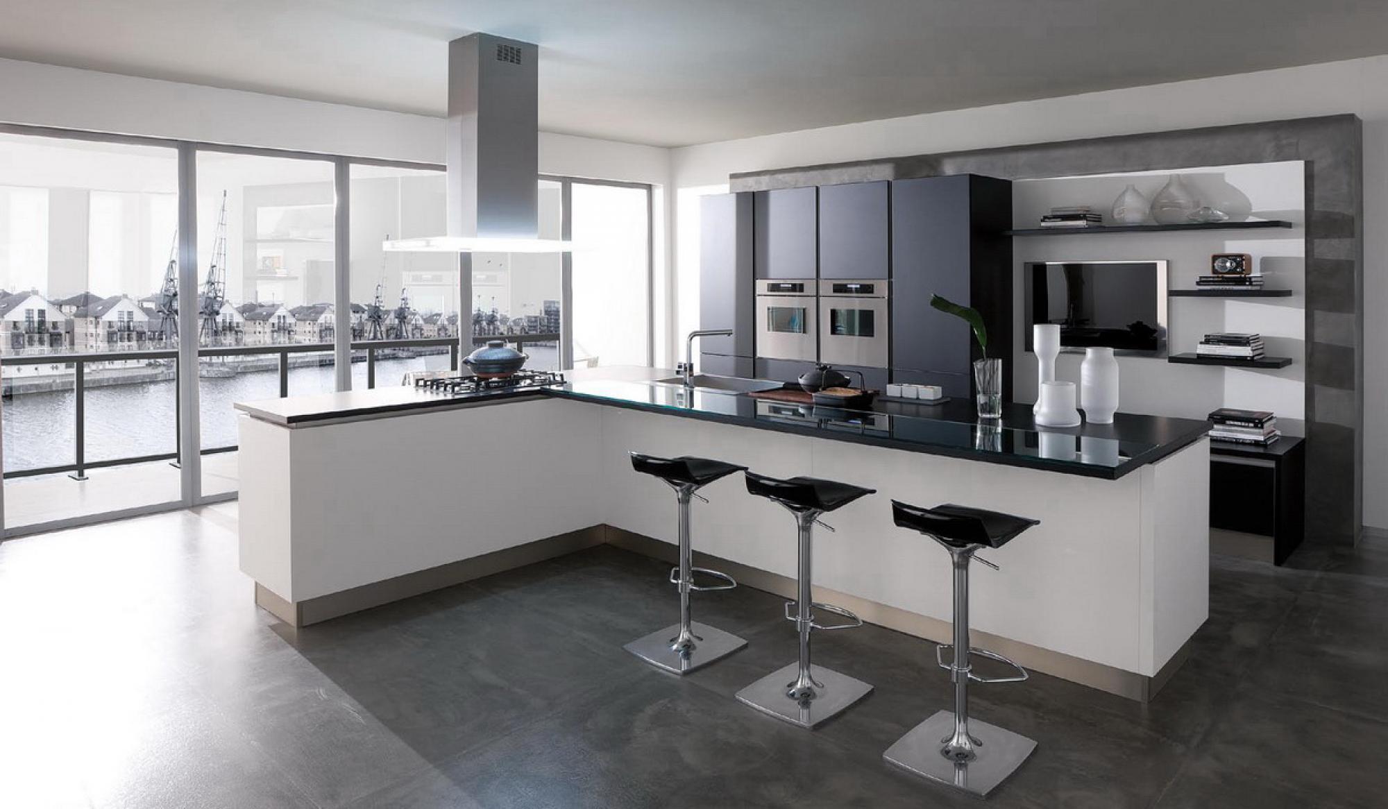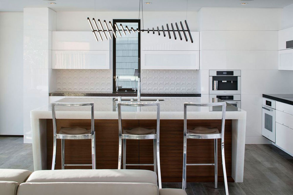 L'ampleur et l'aristocratie de la cuisine blanche dans un intérieur high-tech