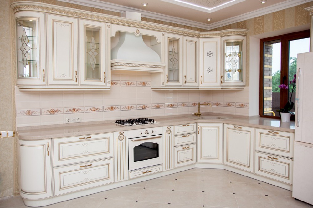 Un argument puissant en faveur de la blancheur délicate est un grand nombre de ses tons, nuances et la capacité de faire preuve d'imagination en ajoutant des accents de couleur. Les lignes du style classique ne sont pas gênantes, car elles n'ont pas de coins tranchants, de formes profilées extra arrondies. Les principales caractéristiques sont la chaleur douce et modérée de la pièce. Une cuisine classique doit répondre à un certain nombre d'exigences obligatoires.