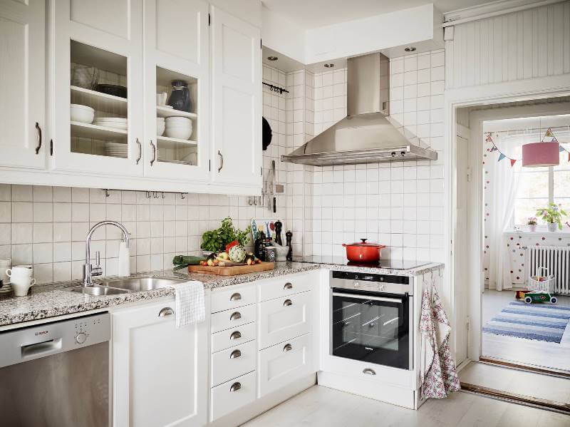 De plus, vous avez besoin d'un réfrigérateur, d'une cuisinière et d'appareils électroménagers lumineux. Ils complèteront parfaitement la couleur blanche.