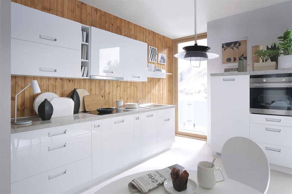 Les panneaux muraux soulignent la blancheur de la cuisine