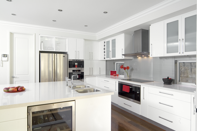 Les surfaces brillantes revitaliseront les tons sobres de la cuisine blanche