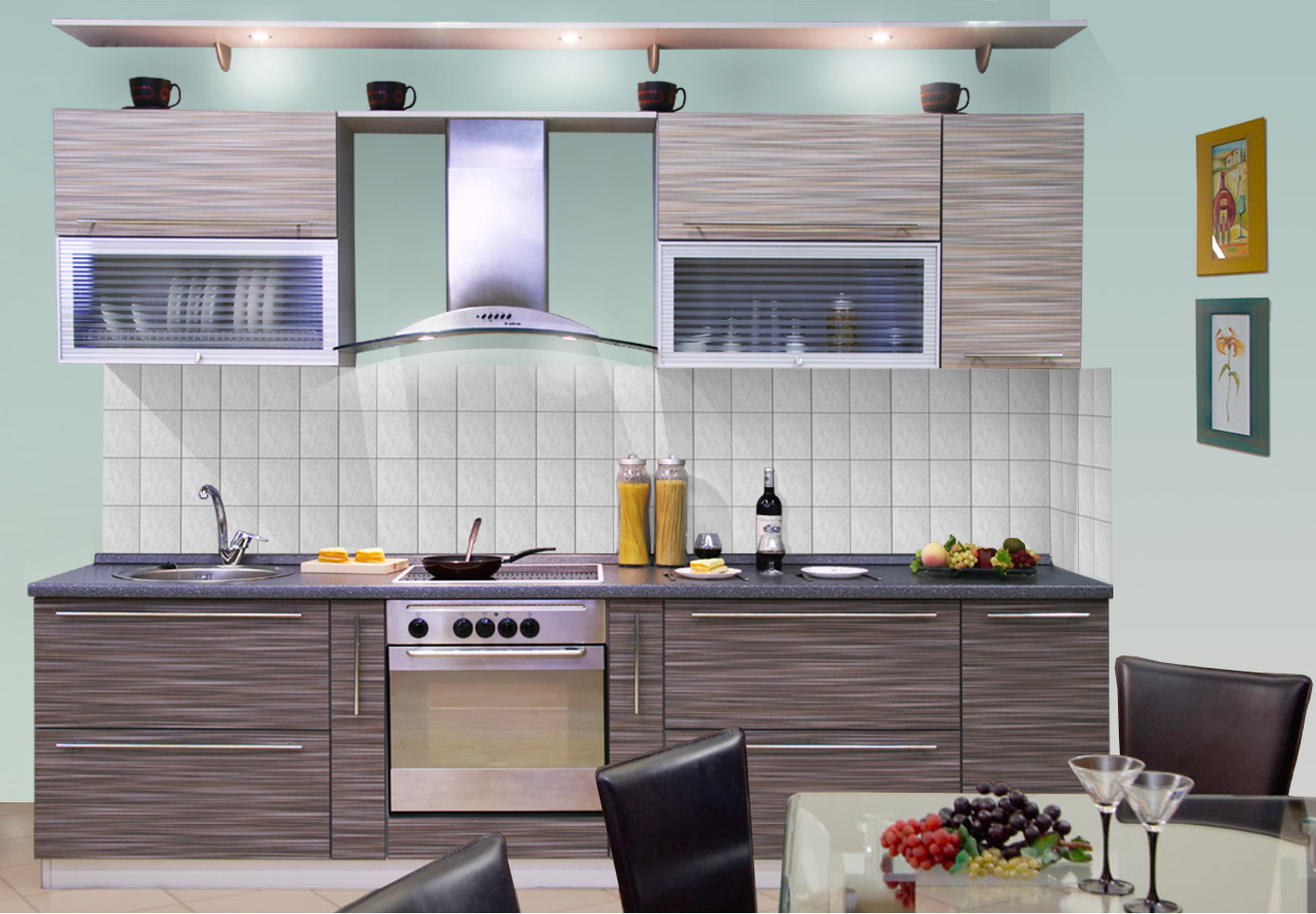 - Version linéaire. Convient aux petites cuisines. La meilleure modification ressemble à ceci: en bas (carrelage, comptoir, évier, un autre comptoir, réfrigérateur) et en haut (hotte de cuisinière, armoires pour ranger la vaisselle et autres accessoires). Dans la base inférieure, vous pouvez monter un chargeur rétractable pour un animal de compagnie.