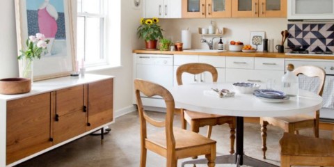 - Les rideaux d'une petite cuisine devraient augmenter l'espace