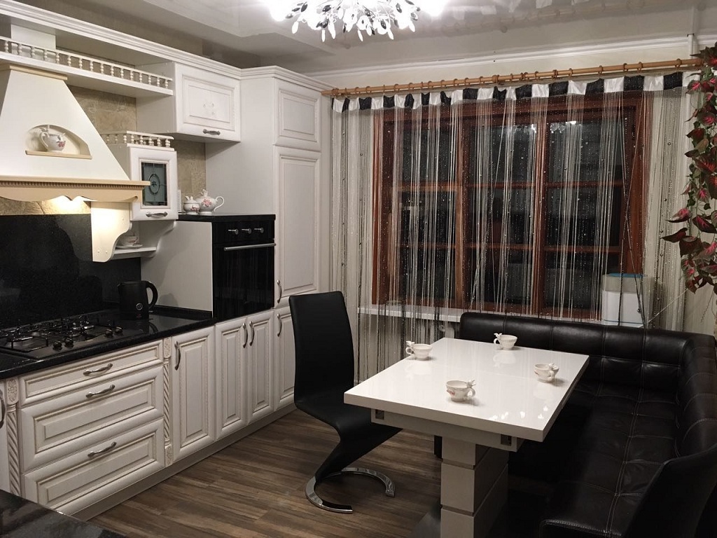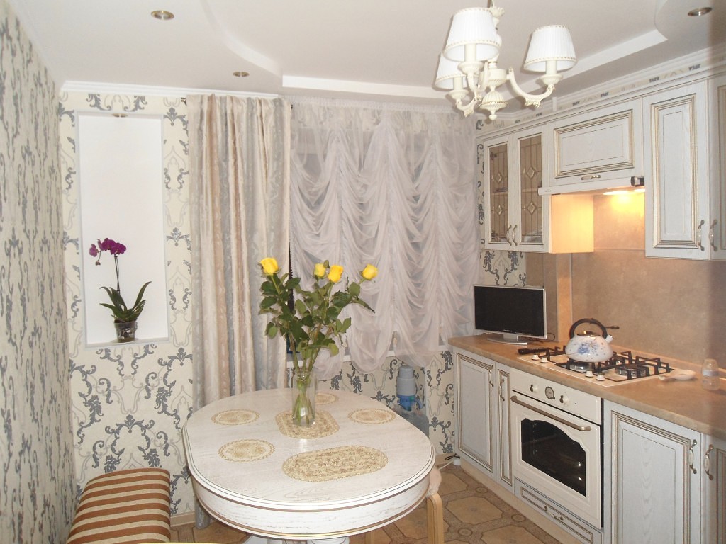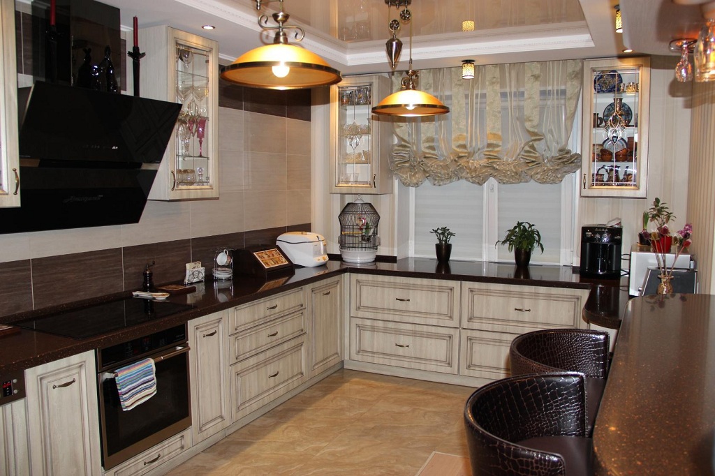 De beaux rideaux dans la cuisine dans le style des classiques modernes resteront l'option la plus optimale pour la décoration intérieure, même si chaque année les changements de mode et les tendances se remplacent rapidement. Si vous le souhaitez, les classiques peuvent être conçus en tenant compte des exigences de notre temps. Pour ce faire, il existe un grand nombre de types modernes de tissus, corniches et éléments décoratifs. Et puis tout intérieur deviendra riche, concis et en même temps confortable.