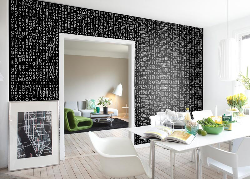 - hi-tech - contraste d'une palette sombre et profonde avec un papier peint photo clair en noir et blanc;