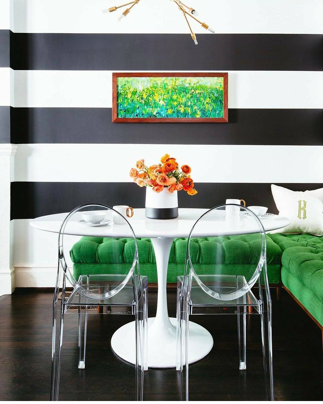 Les rayures ou motifs disposés verticalement étendent l'espace et les rayures horizontales agrandissent la pièce.