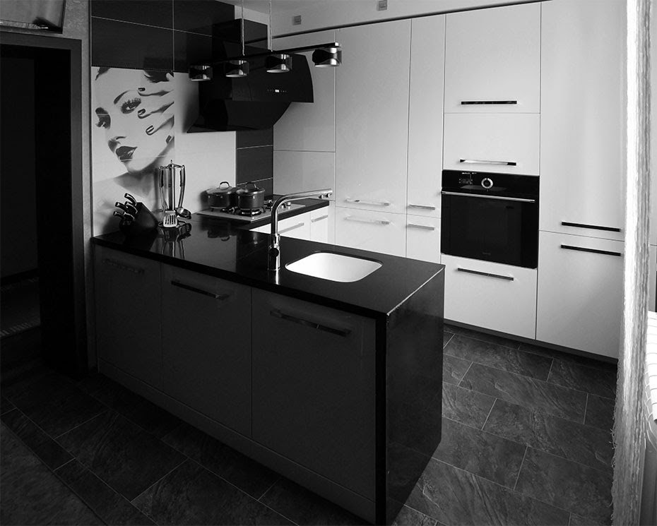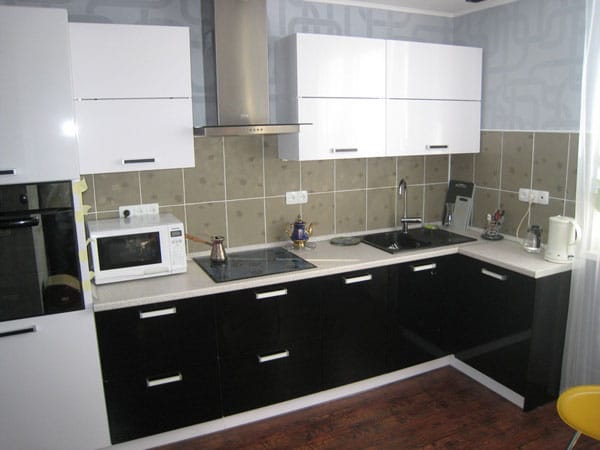 Il s'agit de combinaisons. Qui nécessitent une dilution supplémentaire. Tout le monde peut profiter d'une cuisine en noir et blanc, car l'élégance stricte évoque des associations agréables. Cependant, au fil du temps, cette conception deviendra ennuyeuse. Par conséquent, il est dilué avec d'autres tons.
