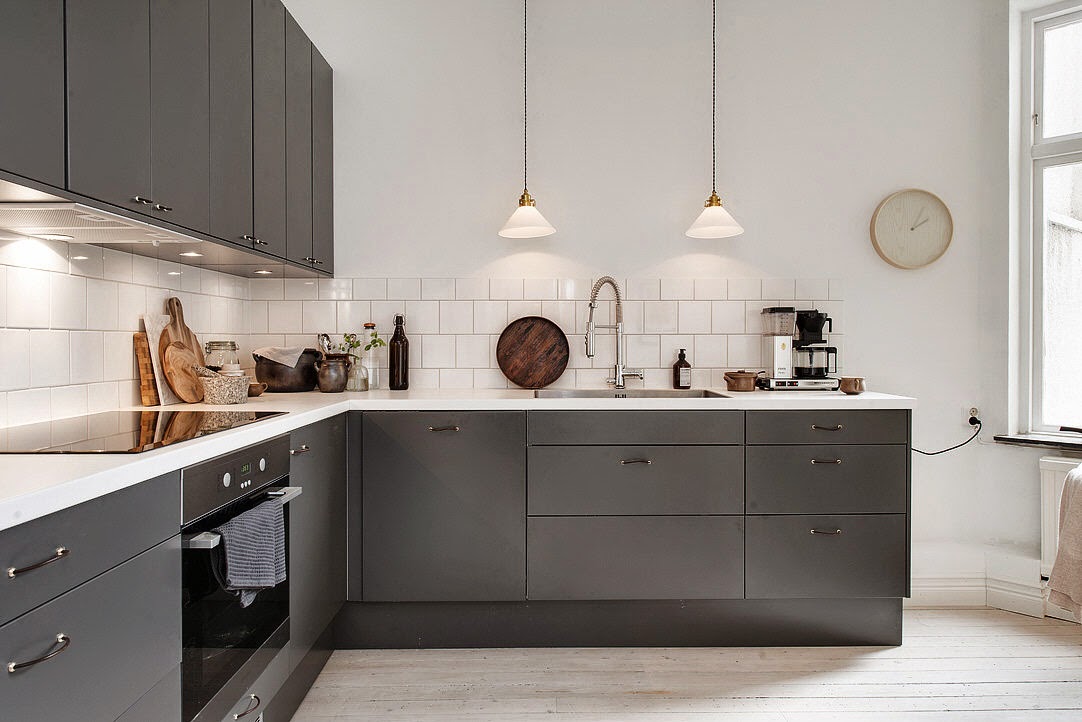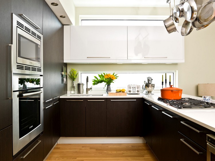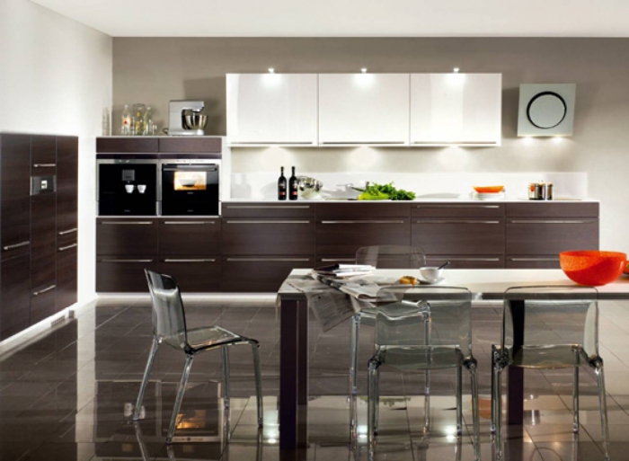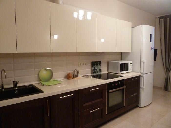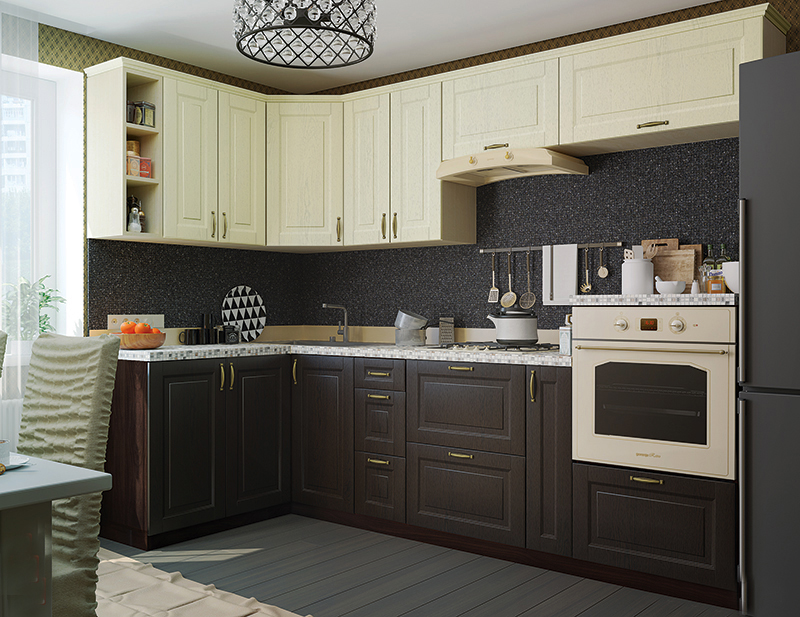 La cuisine est un endroit où une famille se réunit pour prendre le petit déjeuner, le déjeuner ou le dîner. Dans cette salle, nous passons beaucoup de temps, ce qui signifie que nous devons nous sentir à l'aise. Un intérieur avec un dessus foncé et un ton clair en dessous est une excellente solution.