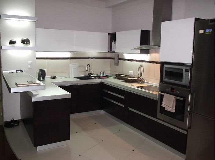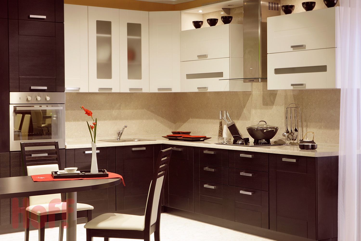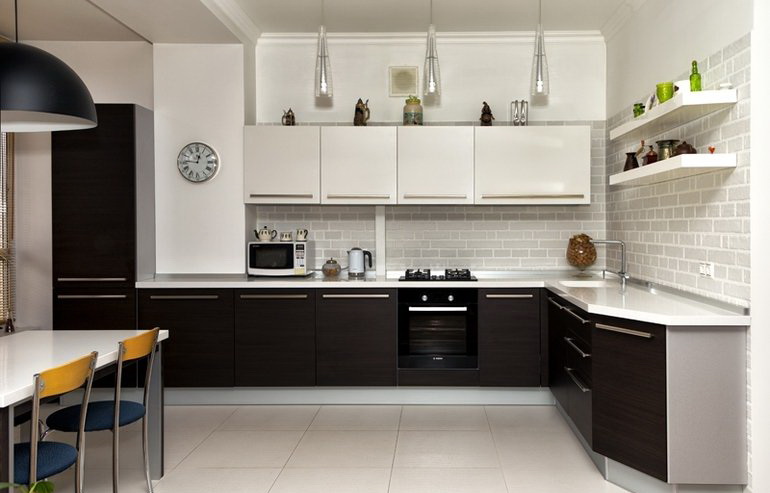 Il n'est pas nécessaire d'adhérer à un certain style dans la décoration de la cuisine. Mais il y a des tendances qui s'intègrent parfaitement à l'intérieur du haut clair de la cuisine à fond sombre, des photos de ces idées peuvent être trouvées sur Internet.