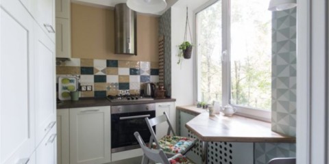 - Il est préférable de combiner le rebord de la fenêtre avec la table de la cuisine. Cela donnera une zone de travail supplémentaire et déchargera la pièce des joints inutiles.