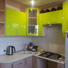- La cuisine est préférable de mettre dans le coin de la pièce. Dans le coin, il y a un évier ou une zone pour les petits appareils électroménagers, par exemple un micro-ondes, un robot culinaire, etc.
