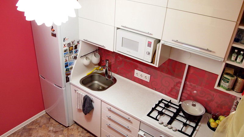 Khrouchtchevka - appartements dans des maisons de cinq étages qui ne diffèrent pas par des tailles particulièrement grandes. La cuisine dans un tel appartement est généralement de 6 mètres carrés. Pour une telle cuisine, il est très important de placer rationnellement les meubles et accessoires, surtout si vous avez encore besoin de mettre un réfrigérateur dans la pièce.