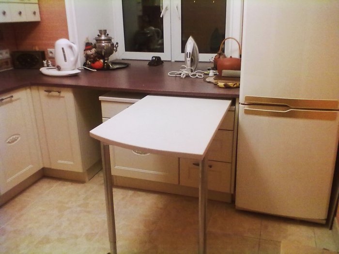 - Si la table est un meuble séparé, c'est-à-dire qu'elle n'est pas connectée au rebord de la fenêtre ou à la surface de travail principale, il est préférable de choisir des modèles qui se plient ou se transforment en un autre type de mobilier.