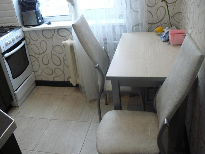 - Chaises - principalement des tabourets ou des chaises pliantes non massives, qui peuvent être facilement retirées ou cachées.