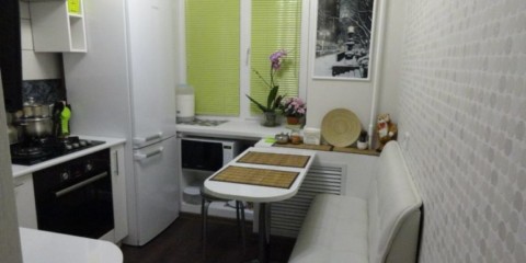 Dans certains appartements avec de petites cuisines, il est possible d'augmenter leur superficie au détriment des pièces voisines - le plus souvent, il s'agit de combiner l'espace cuisine avec un balcon (loggia) ou un salon.