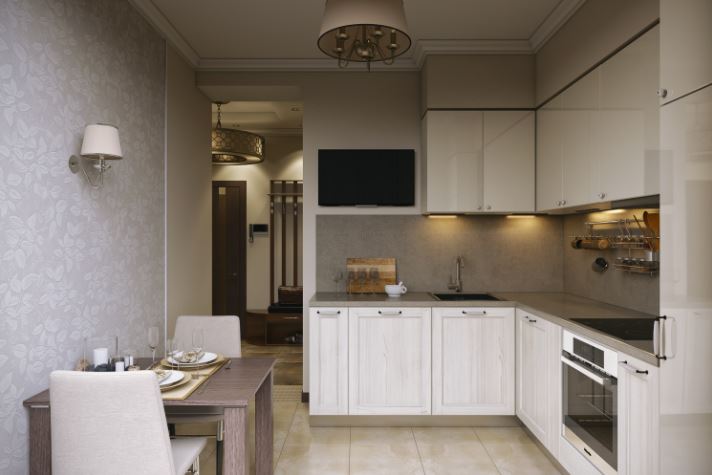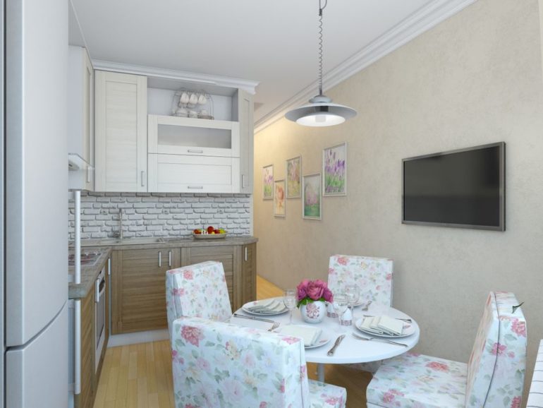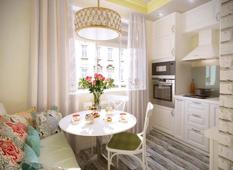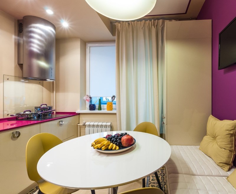 Sur une superficie de huit mètres carrés, vous devez aménager des meubles, ajouter des appareils électroménagers et en même temps créer des conditions confortables et une atmosphère chaleureuse