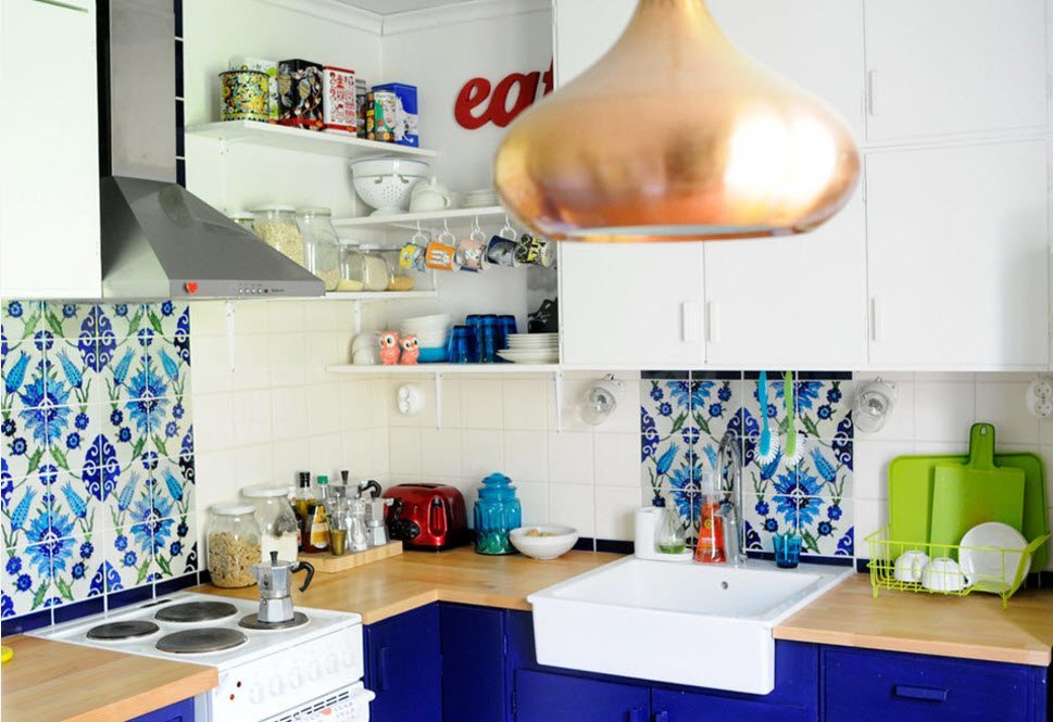 Un bon éclairage d'une petite cuisine équivaut à une sélection compétente de couleurs.