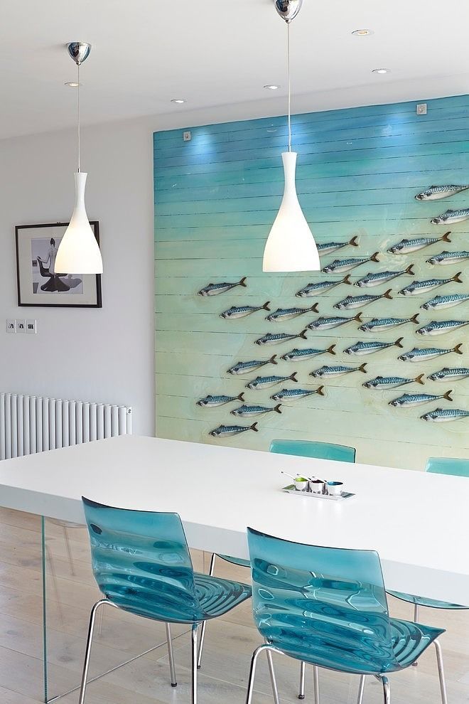 Des accents brillants sont appropriés sous la forme d'objets individuels, de peintures ou de gravures.