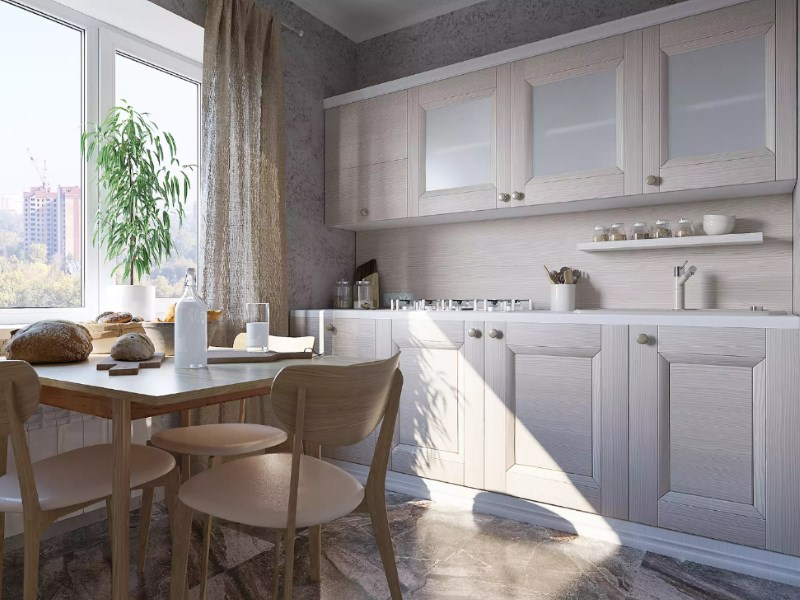Les nuances claires «étalent» les murs de la cuisine et rendent l'espace visuellement plus large