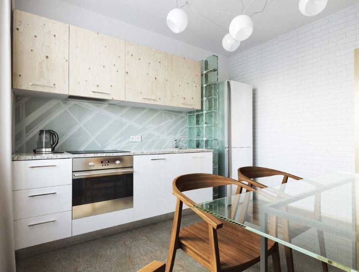La porte entre le balcon et la cuisine peut être agrandie et arquée, ce qui donnera à la pièce un charme particulier