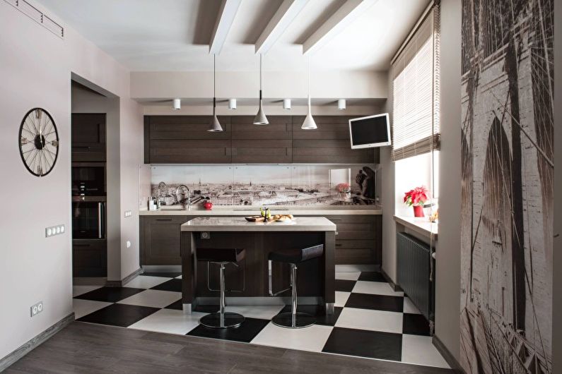 Pour le sol, vous pouvez utiliser à la fois des carreaux de céramique et du linoléum, du parquet ou du stratifié, mais ces derniers ont très peur de l'humidité, donc ils ne rentrent pas tout à fait dans la cuisine.