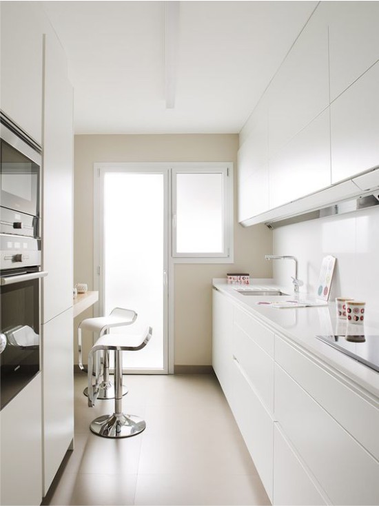Astuce. Vous pouvez diversifier l'atmosphère froide à l'aide d'un fauteuil lumineux, de la façade de l'ensemble de cuisine ou d'un élément de décoration. Mais il doit être de couleur saturée, mieux que sombre, mais souvent vous pouvez trouver des accents rouges, bleus, oranges.