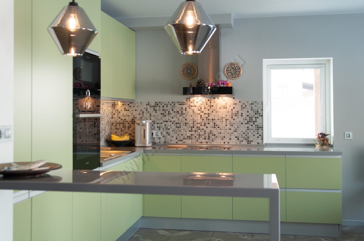 La cuisine d'angle avec un comptoir classique ou provençal est particulièrement spectaculaire. Cependant, ses caractéristiques remarquables pour chacun des intérieurs seront légèrement différentes.