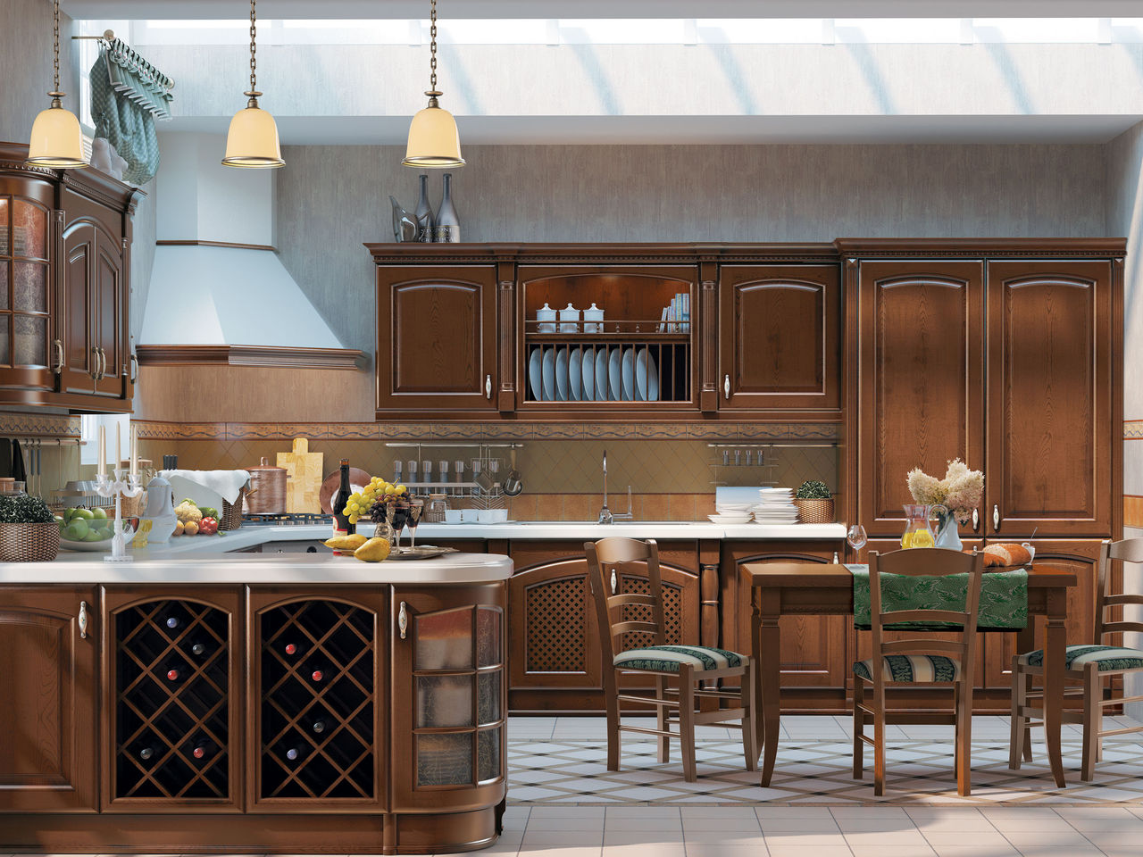 Lors de la planification d'une cuisine avec un comptoir de style classique, il est important que sa combinaison avec la couleur et le matériau de cuisine sélectionnés (bois, pierre, stratifié, marbre ou leurs substituts peu coûteux) soit harmonieuse.