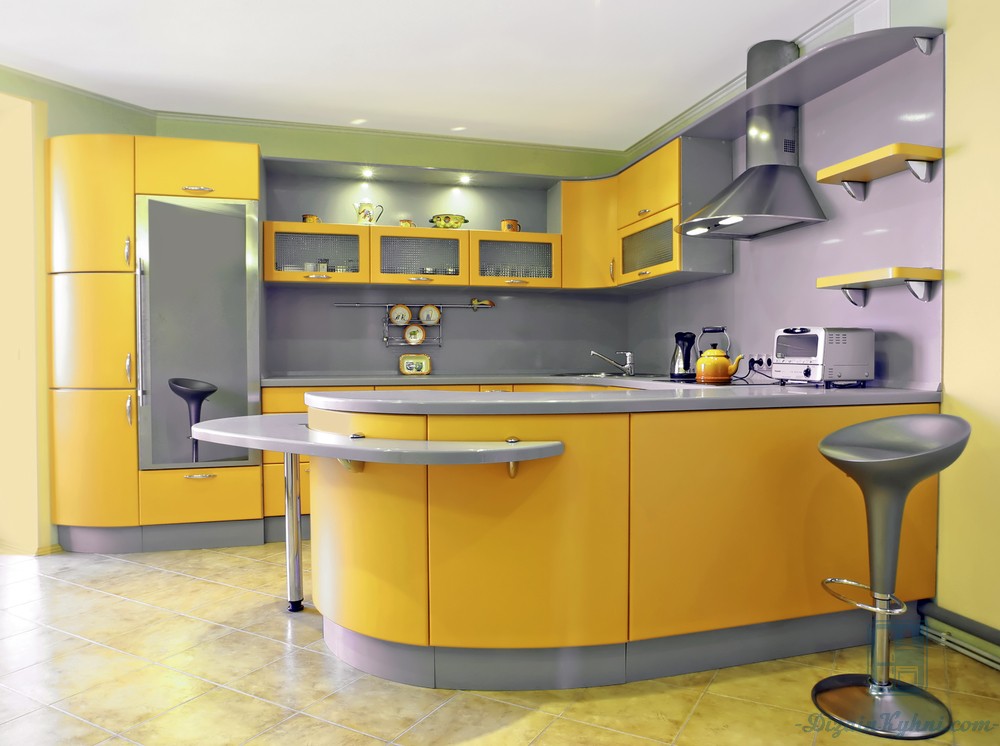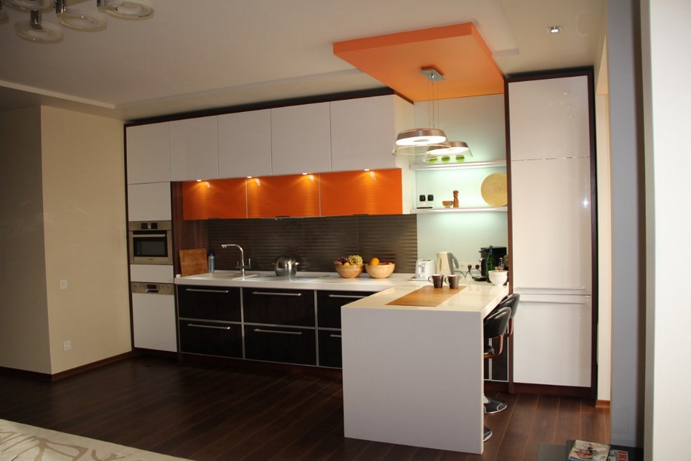 - Caractéristiques de placer des meubles dans la cuisine avec une barre de petit déjeuner