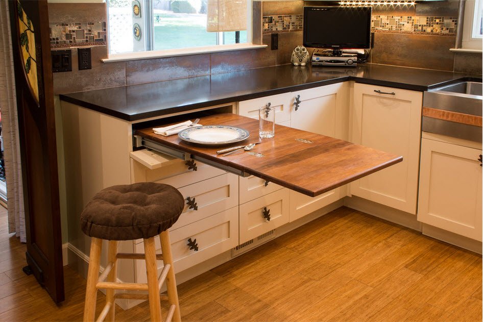 Une petite cuisine peut également être élégante, moderne et confortablement meublée pour vous et votre famille. Pour ce faire, juste au moment de planifier, vous devez faire plus d'efforts et réfléchir à chaque mètre d'espace libre pour qu'il soit confortablement équipé. Aujourd'hui, nous allons parler de ce que devrait être la table de cuisine pour la cuisine, quelle option donner la préférence et laquelle sera plus confortable pour la famille.