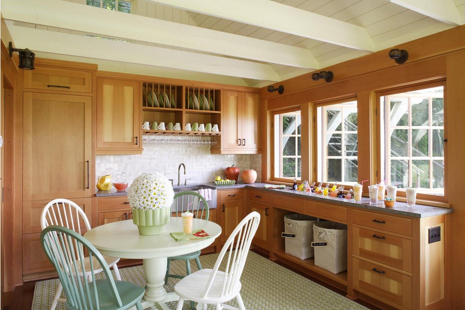Les tables de cuisine en bois sont une option classique. Ce sont des tables en bois qui peuvent remplir la cuisine de confort et de confort. Parmi les avantages: