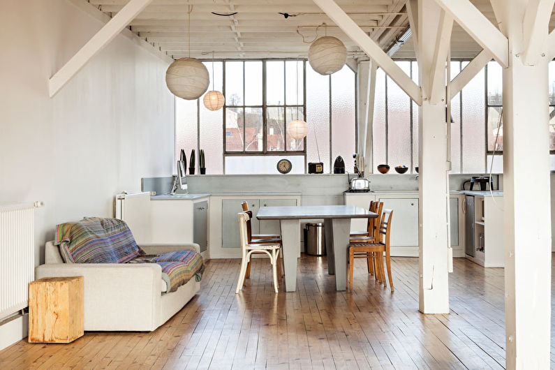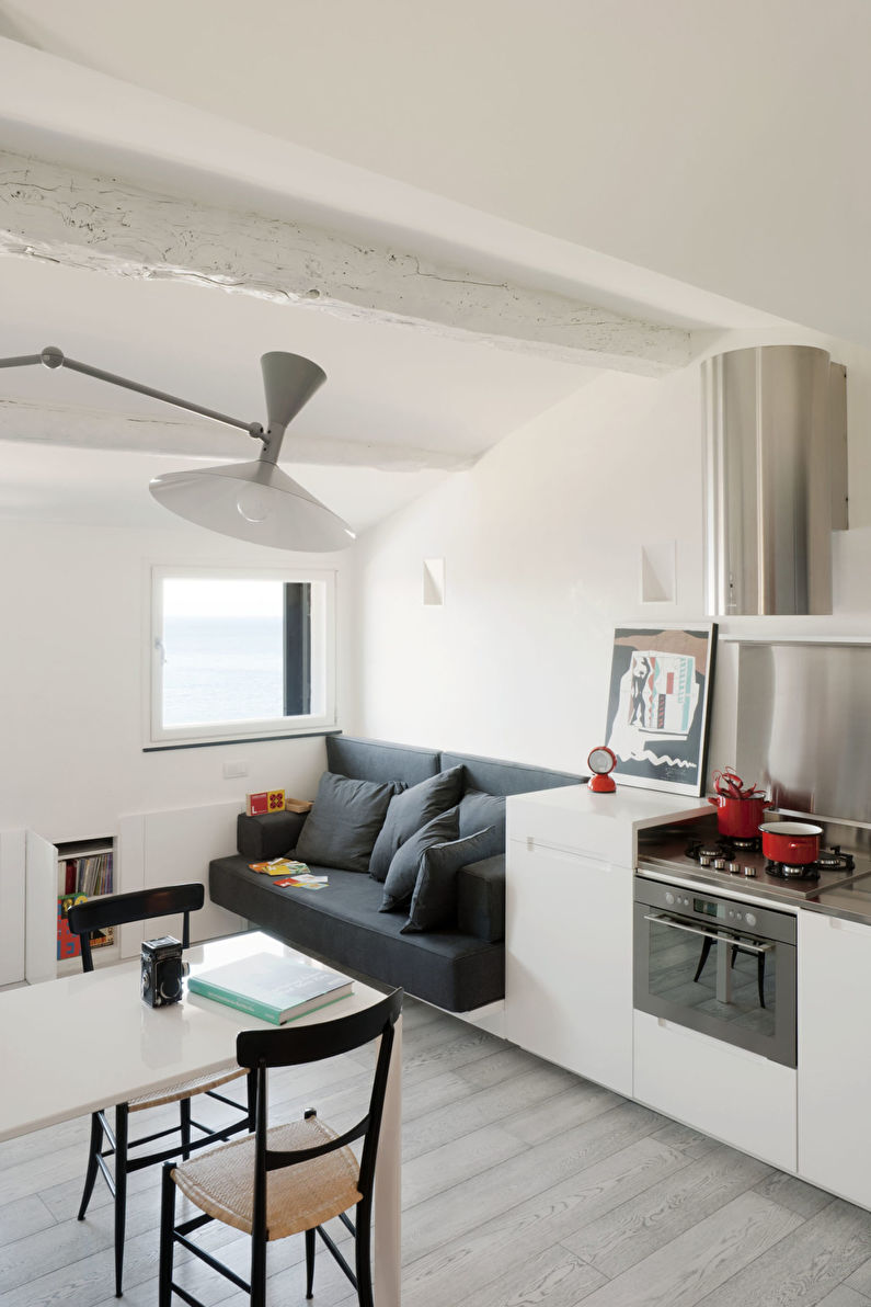 Le canapé, avec un design coulissant vers la cuisine, est très pratique à plusieurs égards.