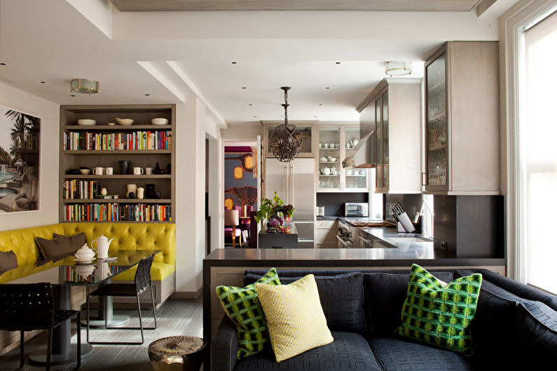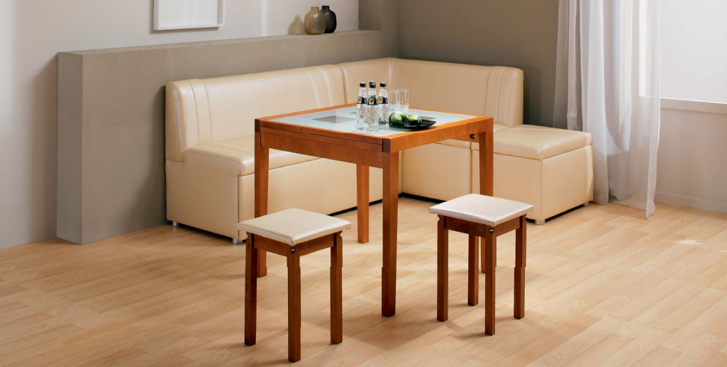 Lors du choix d'un canapé pour la cuisine avec une couchette dans un petit appartement, vous devez privilégier la modification angulaire