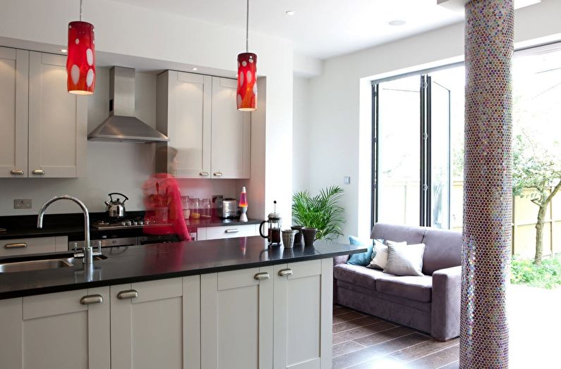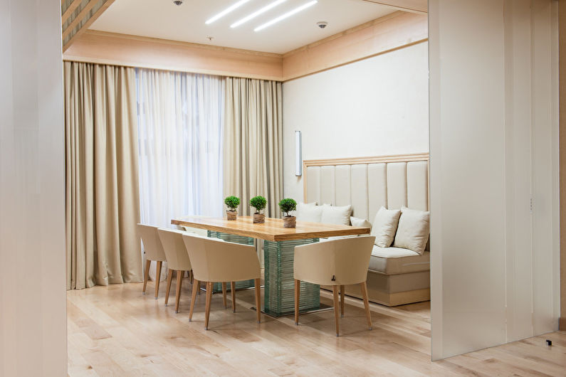 Une nouvelle tendance de notre temps est un canapé pliant dans la cuisine. Cette solution est très pratique et pratique. Il donne plus d'espace, de confort et de confort. Et les invités en visite passeront facilement la nuit, s'installant directement dans la cuisine.