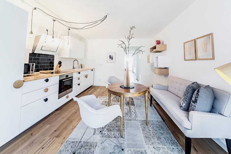 Mais non seulement dans Khrouchtchev, cette solution est utilisée. Les demeures modernes et de haute technologie, avec d'énormes cuisines, sont équipées de canapés et fauteuils luxueux en cuir véritable coûteux. Naturellement, l'option de pliage est bien accueillie même par les riches.