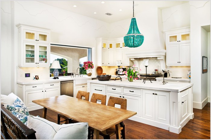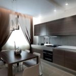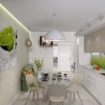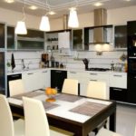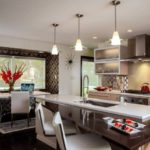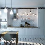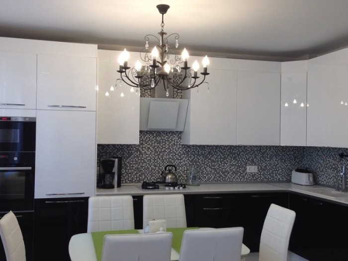 Un lustre compact monté au-dessus de la table à manger comme source lumineuse supplémentaire apportera originalité et confort à la cuisine.