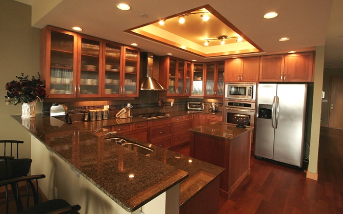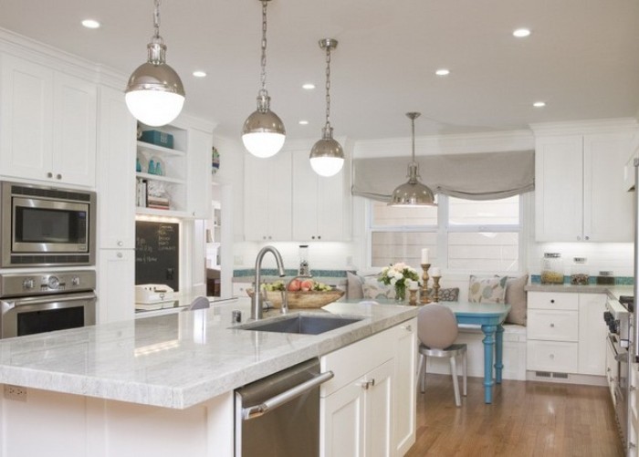 Dans les grandes cuisines, vous pouvez utiliser plusieurs types d'appareils d'éclairage en même temps.